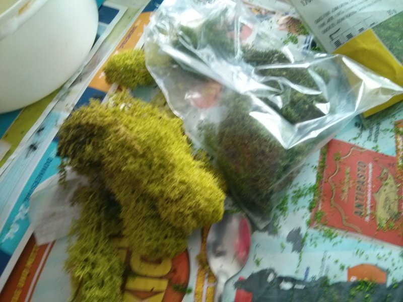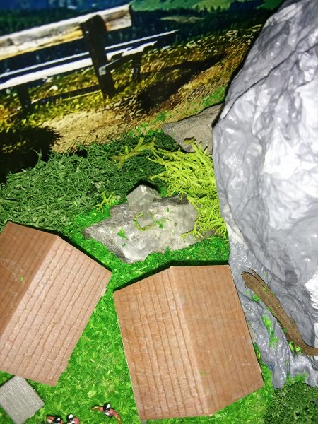 Zuerst wurde mit echten Holzteilchen etwas Struktur in die Landschaft gebracht: